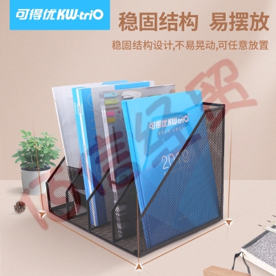 可得优(KW-triO)桌面收纳金属组合式分层收纳文件框文件筐文件架文件座/文具座资料架 四列 免安装ZW-06 自营