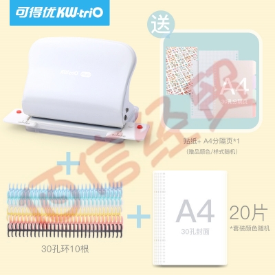 可得优(KW-triO)20孔26孔30孔多孔打孔机装订活页本打孔器打孔机手账打洞器 打孔器+30孔环套组*10【A4】99H5 自营