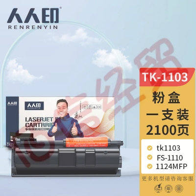 人人印TK-1103粉盒 京瓷Kyocera FS-1110复印机碳粉1024墨粉1124MFP墨粉盒tk1103打印机硒鼓墨盒一体机粉筒 自营
