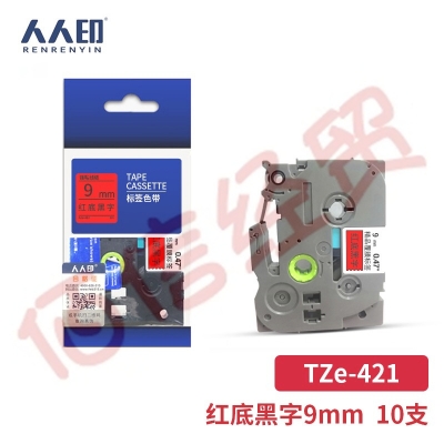 人人印标签带9mm红底黑字TZe-421 10支装 标签色带 适用兄弟标签机标签打印机brother打印标签纸标签打印纸 自营