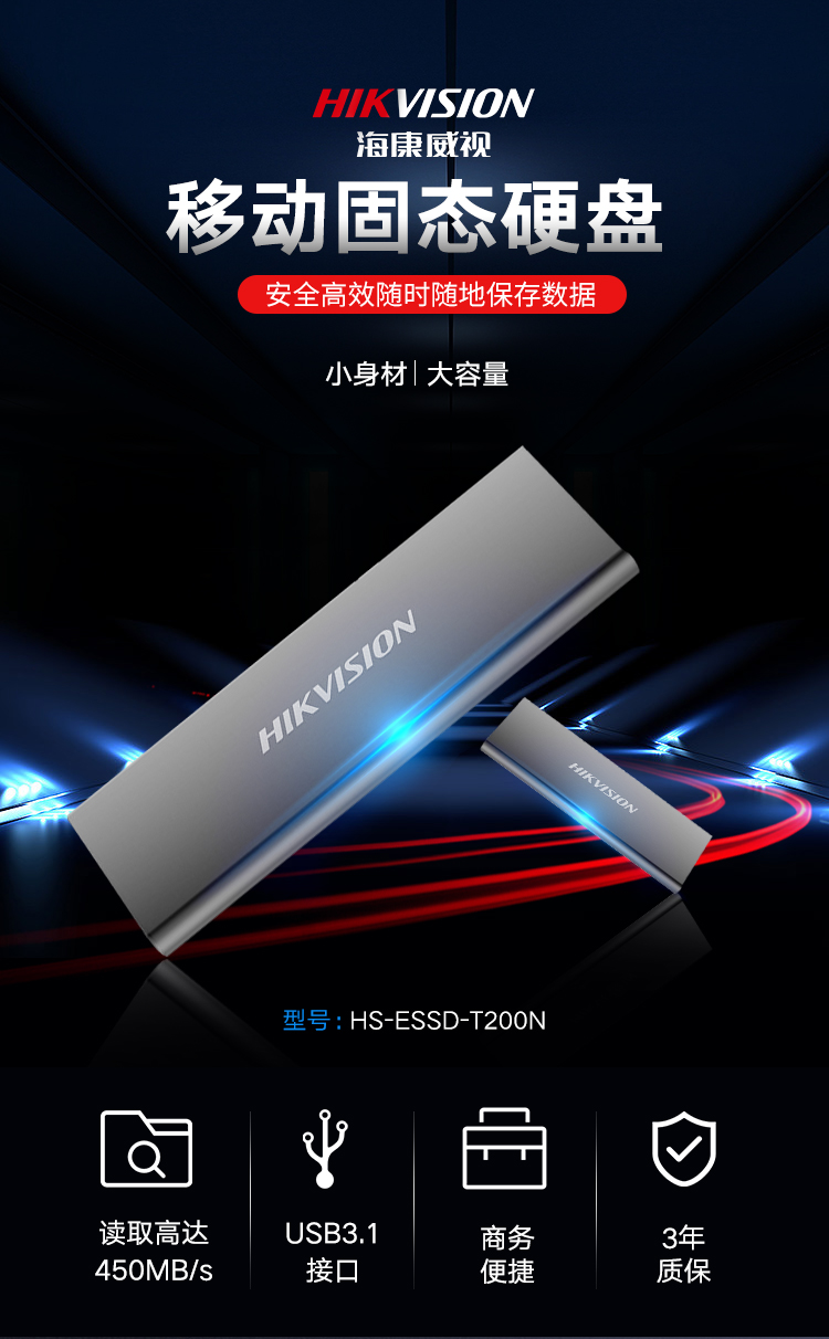 海康威视(HIKVISION)移动硬盘固态 USB3.1Type-C接口办公大手机平板电脑笔记本T200N 2TB 自营