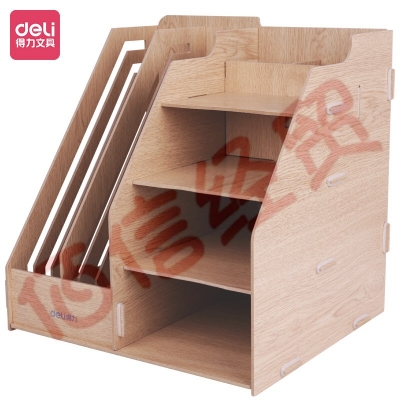 得力(deli)两联多功能组合桌面文件框办公室多层资料架子纤维板创意拼装文件栏收纳盒文件架 9842 自营