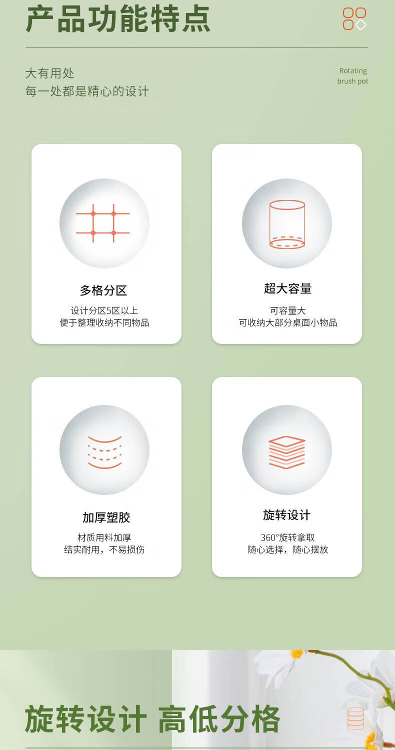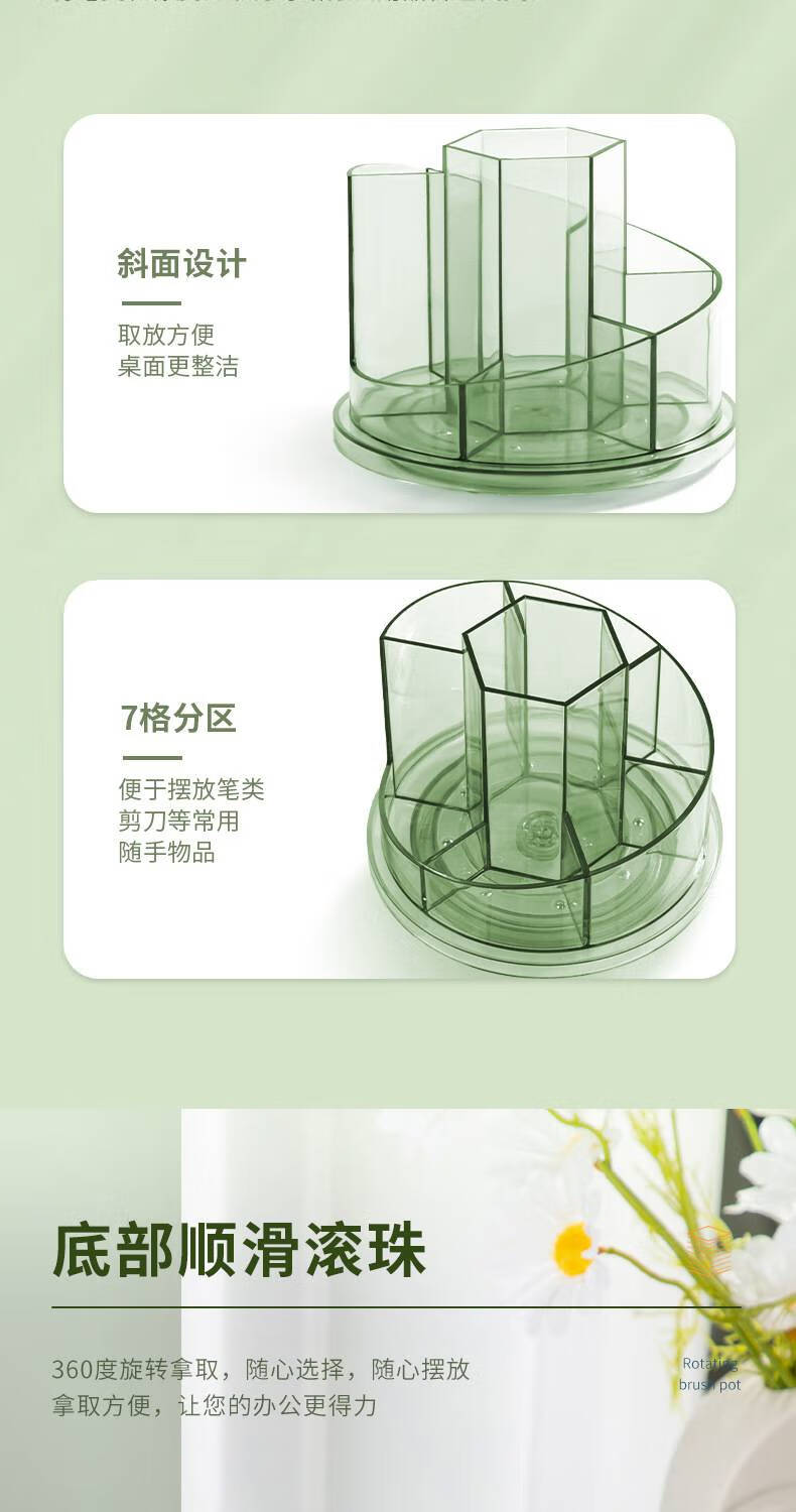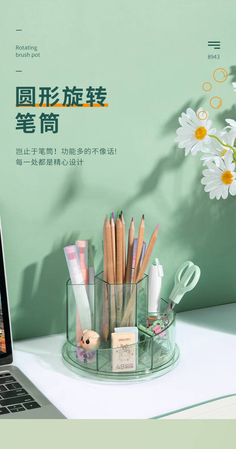 得力(deli)旋转笔筒办公室桌面收纳盒笔桶学生桌面多功能创意透明笔筒 【8943】圆形旋转至透明蓝 自营