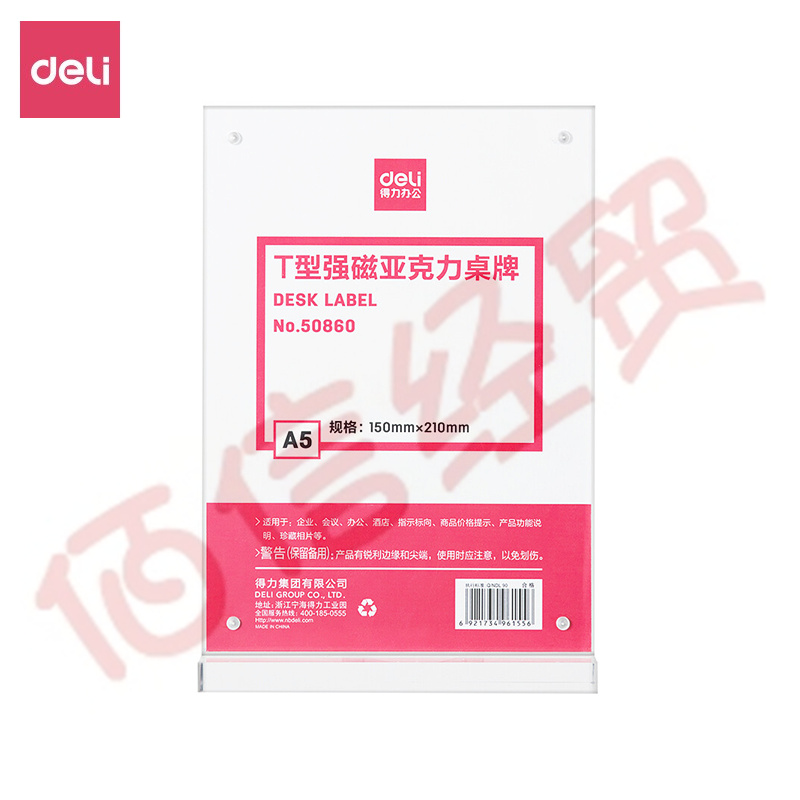 得力(deli)50860 T型A5竖式透明强磁吸附亚克力桌牌/展示牌/台卡/酒水牌 自营