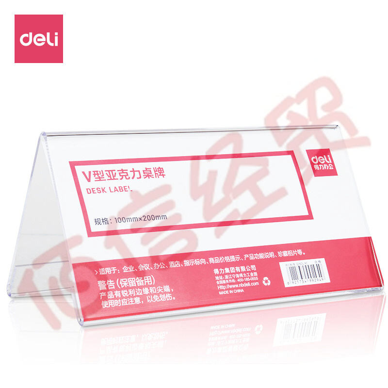 得力(deli)50874 V型100*200mm亚克力桌牌展示牌 会议摆件 10只装 透明 自营