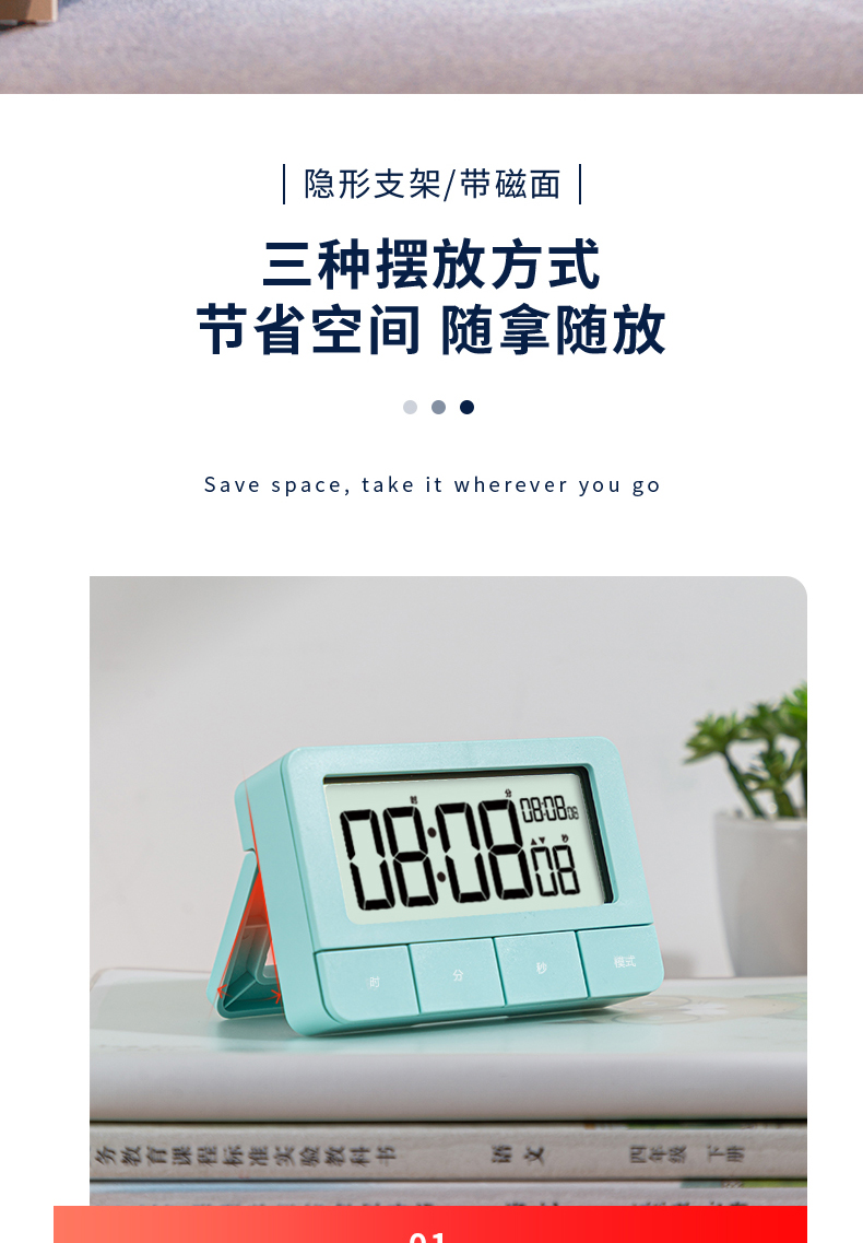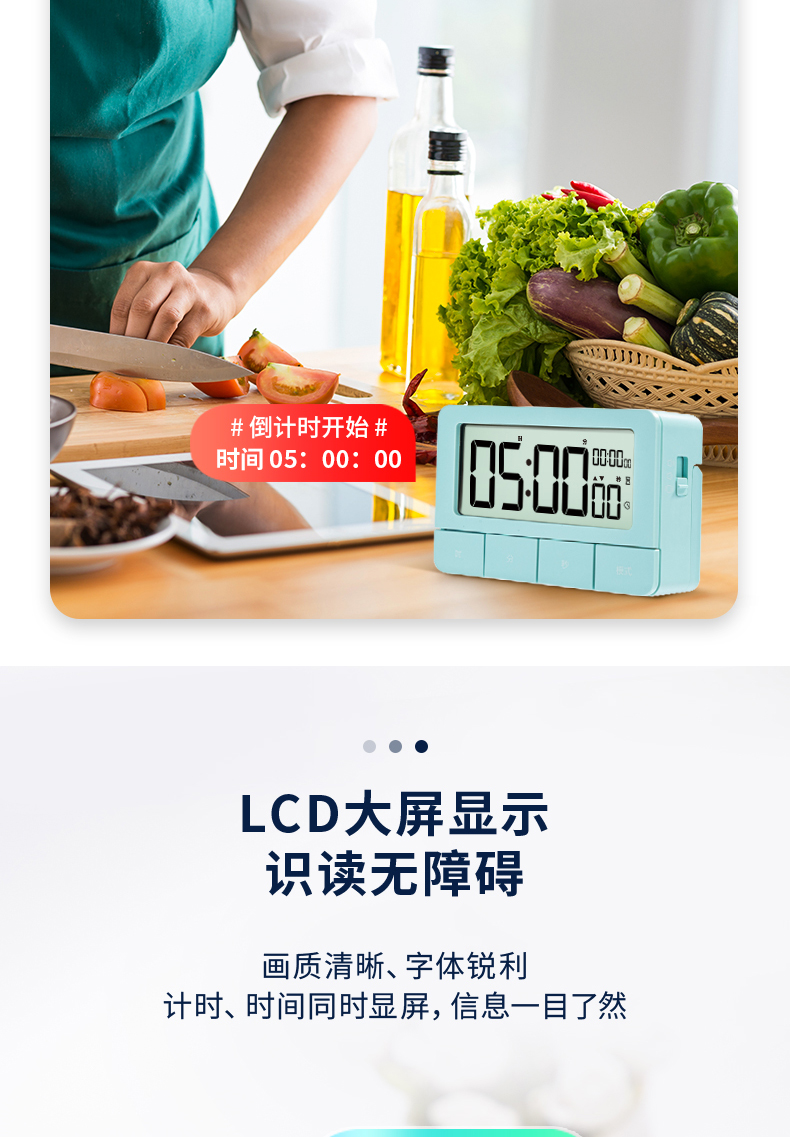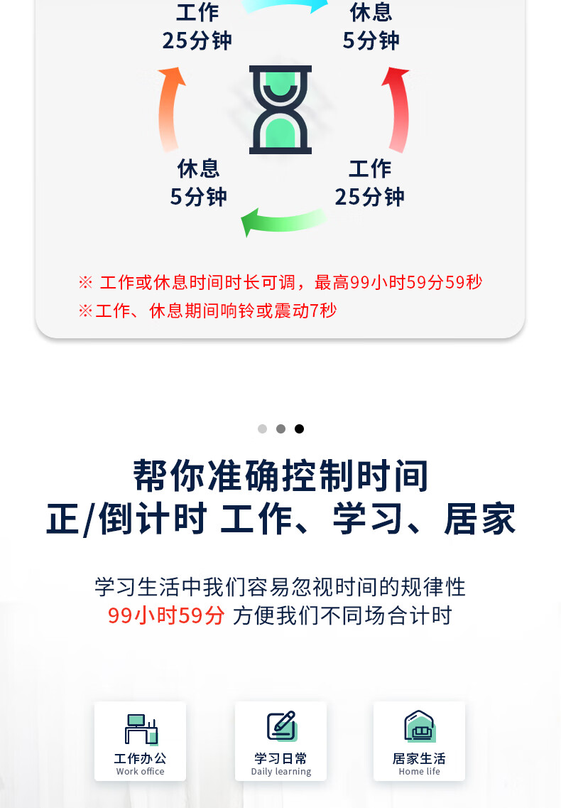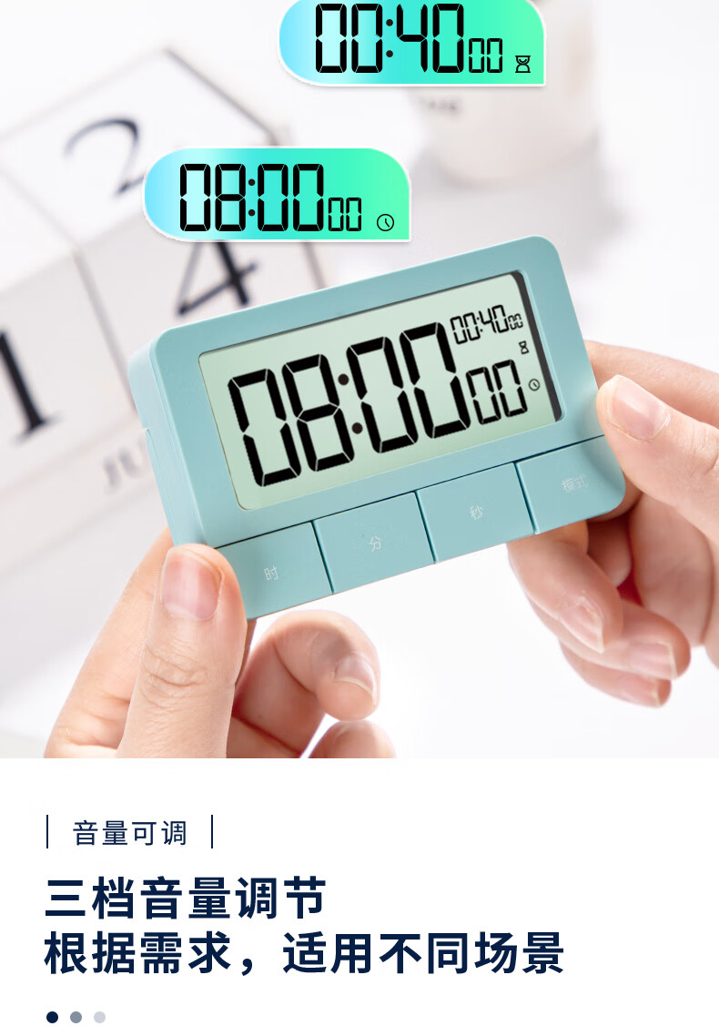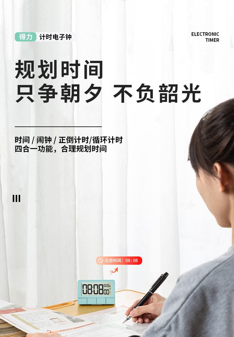 得力(deli)多功能电子闹钟 正倒计时循环计时器 学生练习考试计时器答辩演练计时可震动中秋节礼物 绿色 8841 自营