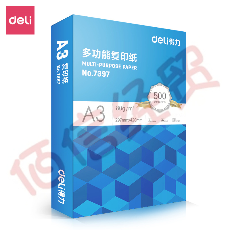得力7370复印纸-A3-80G-5包(蓝色)(5包/箱)口碑优选复印纸 高性价比复印纸 行业热销复印纸 自营