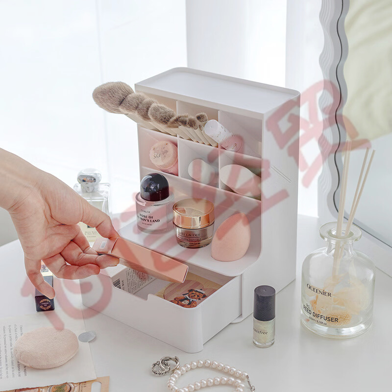 可得优(KW-triO) 大容量收纳盒抽屉式办公文具文件架斜插式笔筒学生笔架居家化妆收纳盒 白色【实色】 自营
