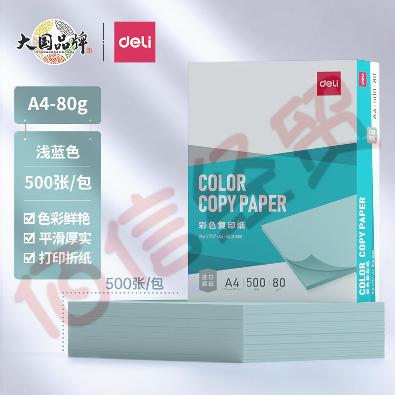 得力(deli)A4 80g 浅蓝色彩纸复印纸 彩色非厚卡纸儿童手工纸剪纸打印纸 500张/包 7757-A4-500 自营