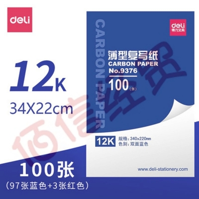 得力(deli)经济耐用薄型双面复写纸 100张/盒 办公用品 12K 340×220mm 9376 自营