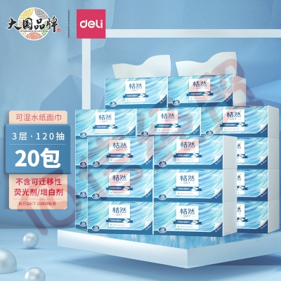 得力(deli)抽纸 柔韧3层120抽*20包软抽 抽取式面巾纸 桔然soft系列纸巾 S码 MR3120-01 自营