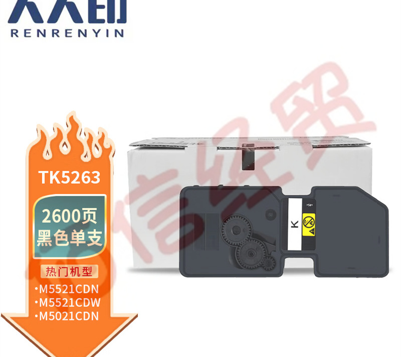 人人印TK-5253K黑色 适用京瓷Kyocera ECOSYS M5521CDW碳粉M5521CDN M5021CDN粉盒 TK5263大容量墨盒 含芯片 自营