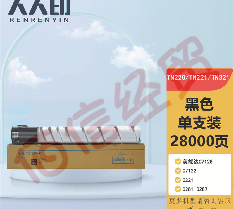 人人印 TN220粉盒黑色 适用柯尼卡美能达C7128 C7122 C221 C281 C287墨盒 震旦ADT223 ADC223 S 283 碳粉 自营