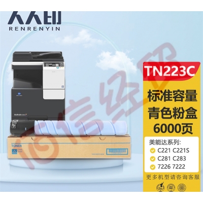 人人印 美能达TN223蓝色墨粉盒 柯尼卡美能达TN224 C256 C266 C7222 C7226墨盒 柯美C226碳粉 (标准容量) 自营