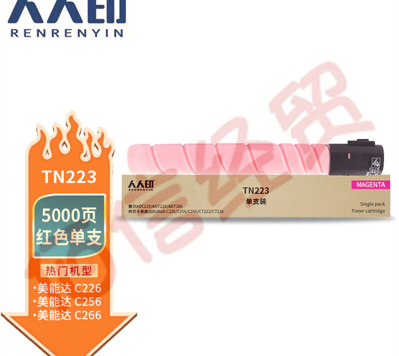 人人印 适用美能达TN223复印机粉盒Bizhub c226 c283 c266碳粉c256打印机墨粉盒 TN223M 品红色粉盒 标准版 自营