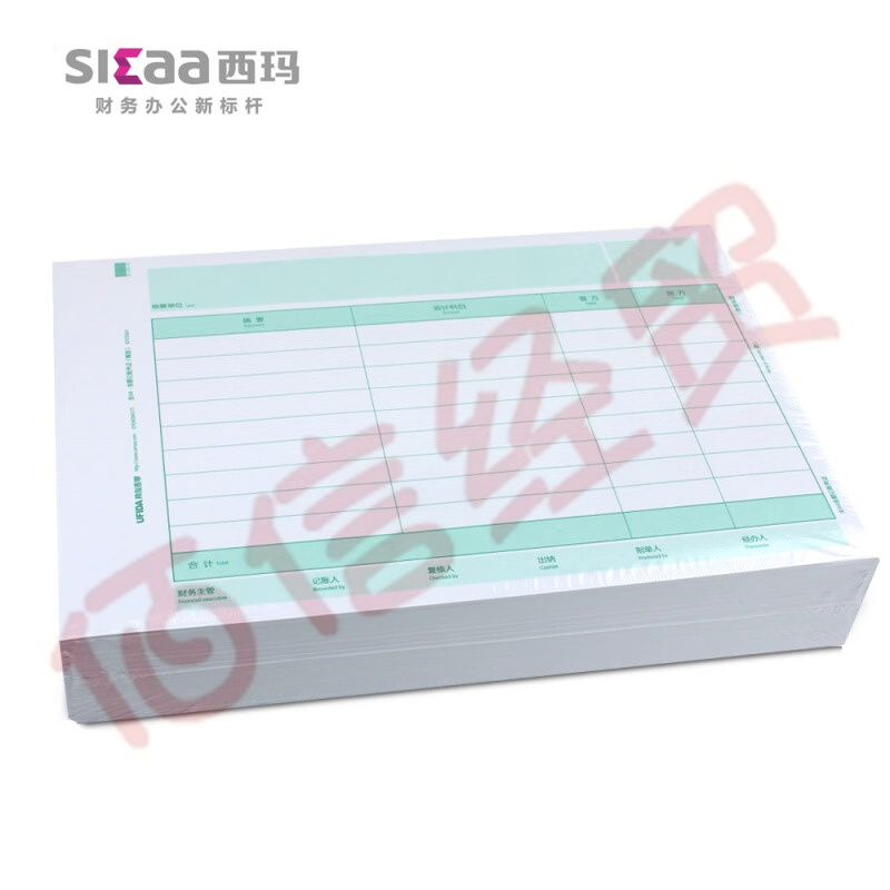 西玛凭证纸证纸&全A4金额记账凭证KPJ106H(横版) 80克纯木浆1000页(绿)--整箱售 自营