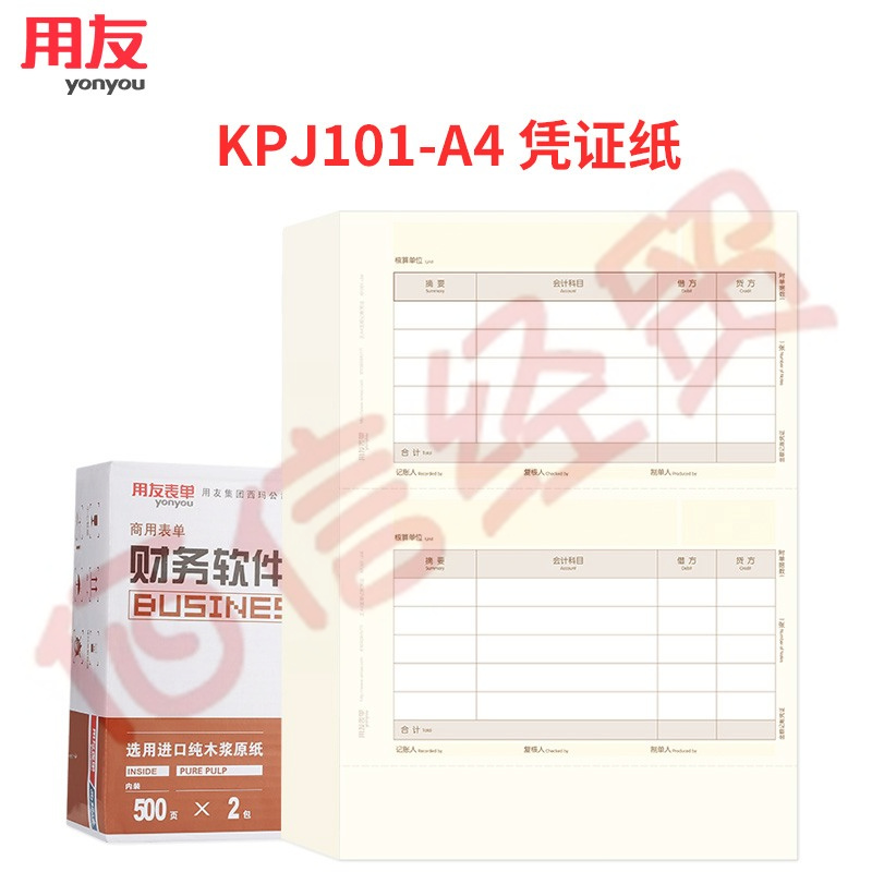西玛用友凭证纸KPJ101-A4 210*127 A4规格 正A4金额记账凭证 自营