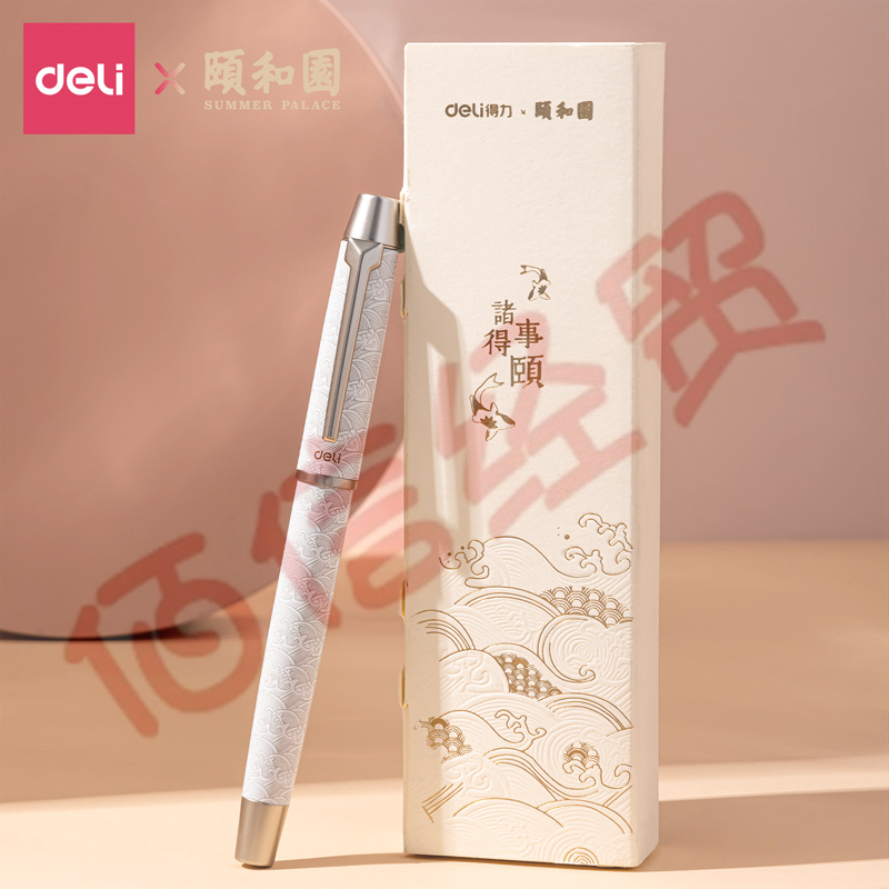 得力(deli)颐和园宝珠笔礼盒商务办公送礼 男女生日礼物0.5mm子弹头白色 S167 自营