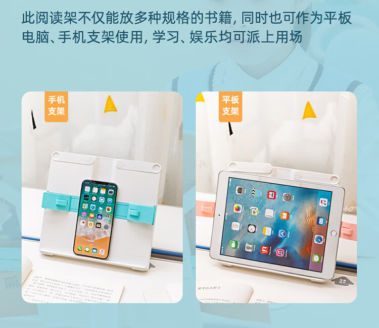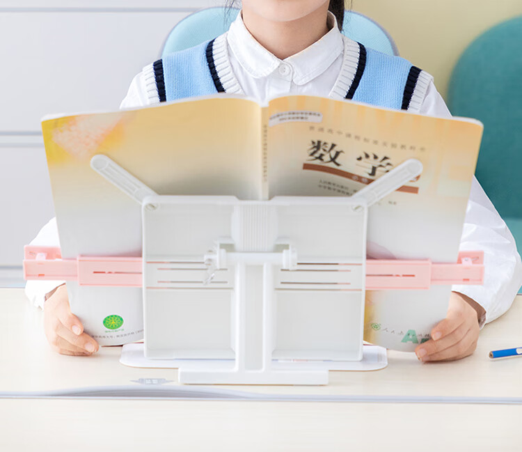 得力(deli)多功能阅读架 可伸缩折叠便携式读书夹儿童坐姿矫正阅读支架课本夹书文具六一礼物 粉白色 70531 自营