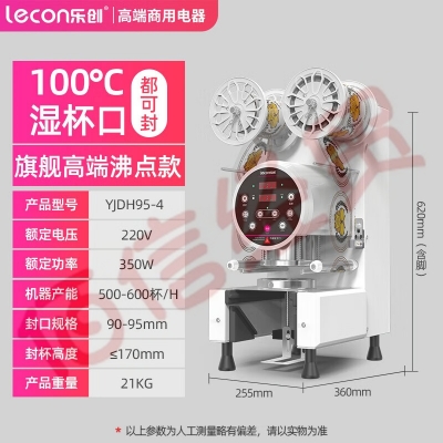 乐创(lecon)奶茶封口机全自动封口机商用豆浆封杯机 塑料杯纸杯饮料 100℃干湿可封 YJDH95-4 自营