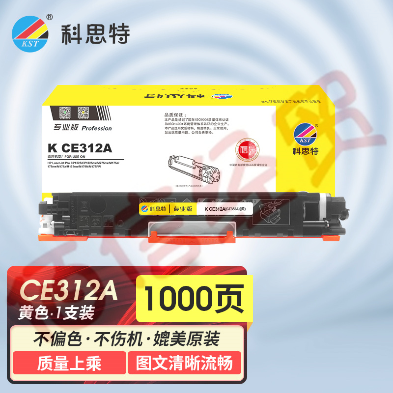 科思特K CE312A/CF352A 粉盒 适用惠普 CP1025 M275nw M175a/nw 可打印1000页 黄色 专业版 自营