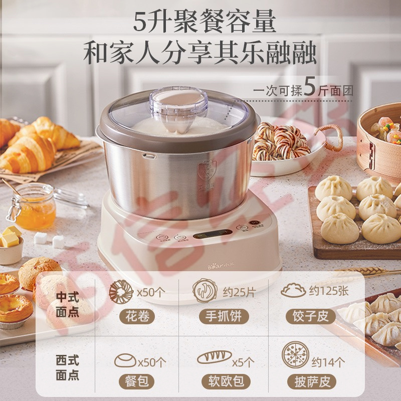 小熊(Bear)和面机 揉面机 厨师机 全自动多功能智能和面搅面机 面包面粉发酵醒面HMJ-A50N1 自营