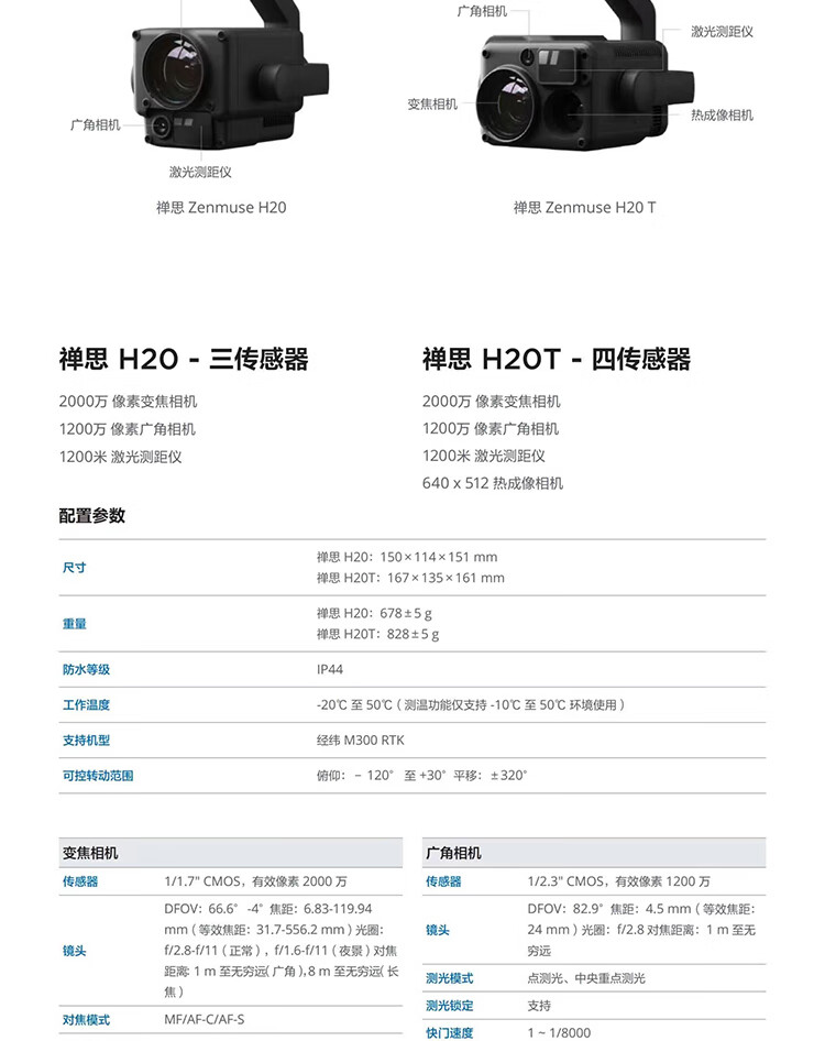 大疆(DJI)无人机 禅思H20T多传感器云台相机 高清航拍 自营