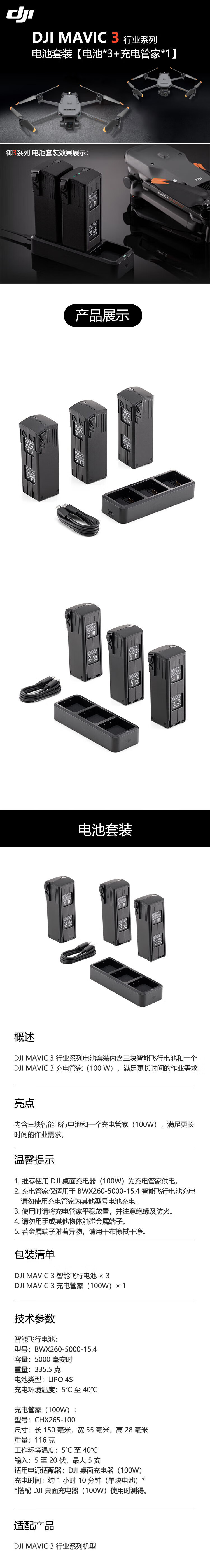 大疆(DJI)无人机 Mavic 御3E/3T 行业版电池套装【电池*3+充电管家*1】 自营