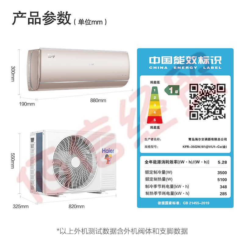 海尔(Haier)新一级 大1.5匹 智净 变频冷暖 壁挂式空调挂机 KFR-35GW/81@VU1-Ca(金) 自营