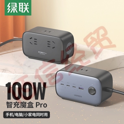 绿联 氮化镓充电器100W智充魔盒桌面插座排插PD多口快充头Type-C/USB插线板适用苹果14/13华为小米手机笔记本 自营