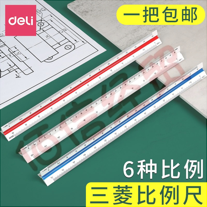 得力(deli) 比例尺三棱尺三角大小室内设计绘图建筑画图多功能测量工具制图设计30cm比例尺 1把装 8930 自营