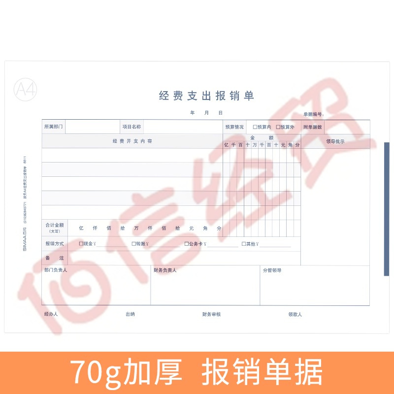 西玛政务A4经费支出报销单 70克木浆原纸 8811 50页/本 5本/包 12包/箱 297*210mm(单包价-整箱售-拍12组) 自营