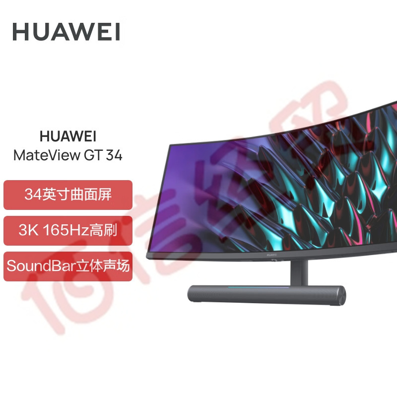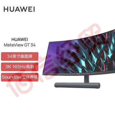 华为HUAWEI MateView GT 34英寸曲面显示器 WQHD 165Hz带鱼屏 Type-C SoundBar立体声场 触控灯条 游戏电竞 自营