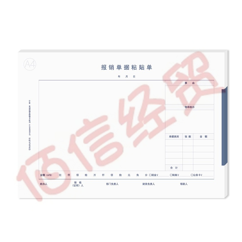 西玛表单 西玛A4政务报销单据粘贴单297*210mm 50页/本--5本/包 12包/箱(单包价-整箱售-拍12组) 自营