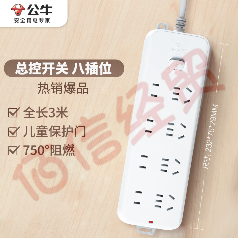 公牛(BULL)插座/插线板/插排/排插/接线板/拖线板 8位总控全长3米 GN-B3440 自营