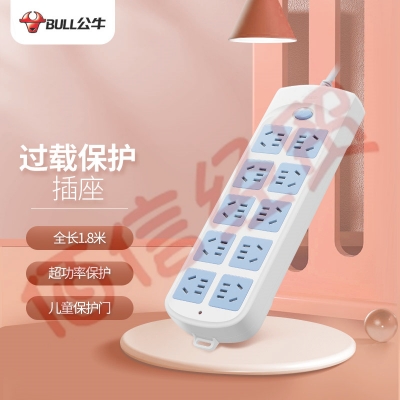 公牛(BULL)超功率保护新国标插座/插线板/插排/排插/接线板/拖线板 10位总控全长1.8米 GN-605 自营