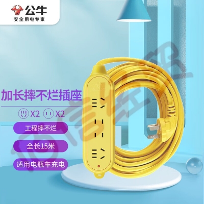 公牛(BULL)加长超长电动车充电插座/插线板/插排/排插/接线板/拖线板摔不烂 4位15米插座GN-C5 自营