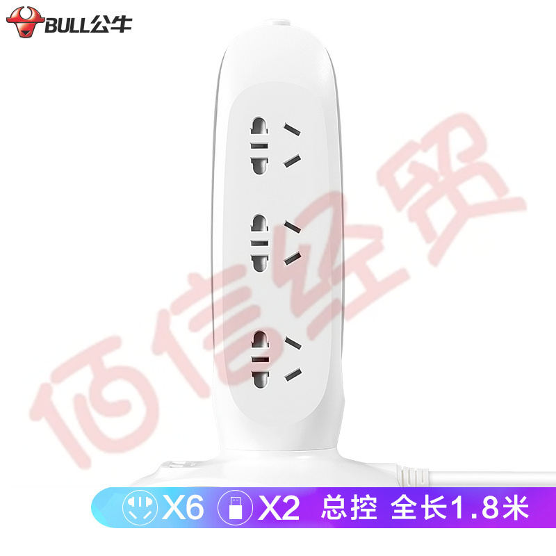 公牛(BULL)公牛立式USB插座/插排/插线板/接线板/排插 6位全长1.8米过载保护带2USB口 GN-V106U 自营