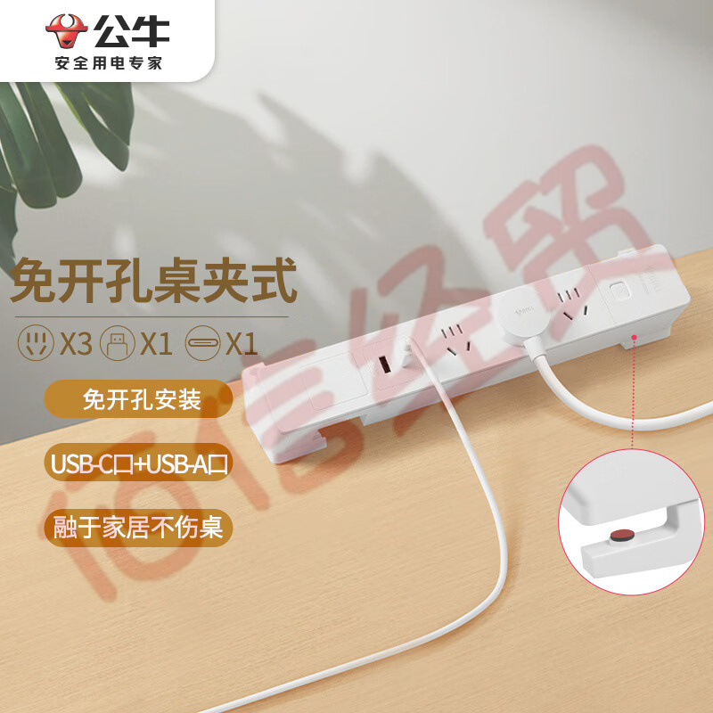 公牛(BULL)公牛桌洞USB插座/插线板/插排/排插/接线板/拖线板 5插孔+2USB口 GN-U2050