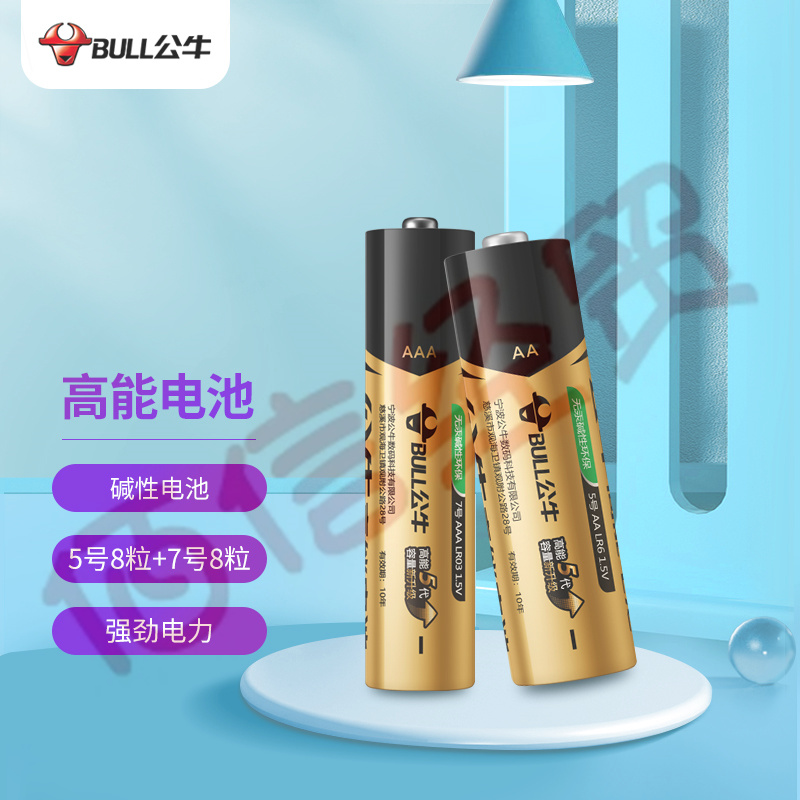 公牛(BULL)5号+7号碱性电池混合装16粒 适用于电动玩具/遥控器/无线鼠标/钟表/电子锁/剃须刀/手电筒等 自营