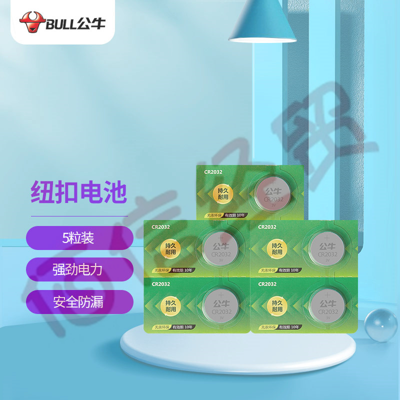 公牛(BULL)CR2032纽扣电池5粒装3V 适用汽车钥匙/体重秤/血糖仪/智能遥控/无线开关 自营