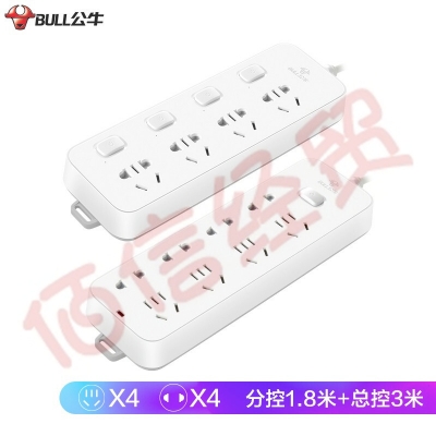 公牛(BULL)新国标插座/插线板/插排/排插/接线板 4位分控1.8米+8位总控3米套装 GN-B3043+GN-B3440 自营