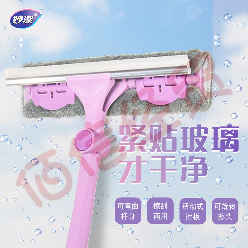 妙洁 擦玻璃神器 魔镜亮窗户清洁 可拆式刮擦两用 可旋转擦头伸缩弯曲(5包起售) 自营