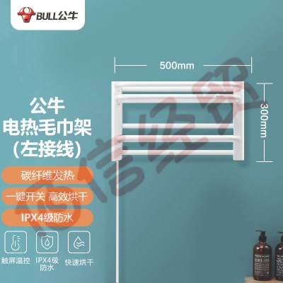 公牛电热毛巾架浴室卫生间浴巾架置物架 碳纤维发热/恒温烘干/除湿抑菌/一键开关GM01FT左接线30*50cm 自营