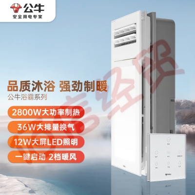 公牛(BULL)浴霸 GY01ECZ 集成吊顶浴霸 风暖型照明干燥净化触控式浴霸 300*600 白色 自营