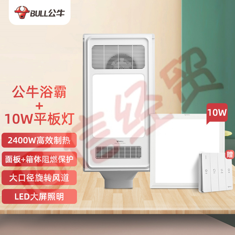 公牛(BULL)浴霸风暖浴室卫生间LED灯集成吊顶GY08AJT浴霸+10W平板灯 自营