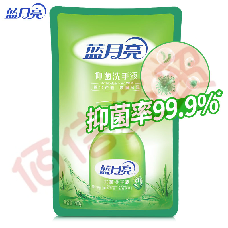 蓝月亮 芦荟抑菌洗手液补充装 袋装500g 清洁抑菌99.9% 泡沫丰富12瓶/箱(单瓶价)(整箱售) 自营