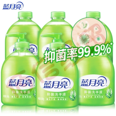 蓝月亮 芦荟抑菌洗手液套装:洗手液瓶500g*3+瓶装补充装500g*3 抑菌率99.9% 家庭补充装【企业专享】 自营