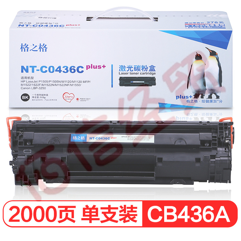 格之格 CB436A硒鼓NT-C0436Cplus+适用HP P1505 P1505n M1120 M1522n M1522nf佳能LBP-3250惠普36A硒鼓 自营