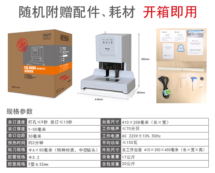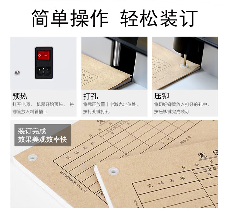 汇金机电(huijin)装订机自动财务凭证档案卷宗电动打孔装订机热熔铆管 汇金HJ-50BI 自营